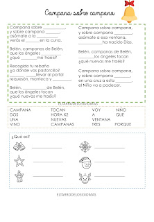 En este caso el villancico se ha dividido por recuadros. Nosotros tendremos que recortar las diferentes piezas y los alumnos tendrán que poner el villancico en el orden correcto escuchando la canción.