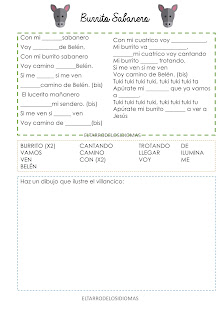 Estos villancicos siguen la dinámica de la actividad de escuchar clásica. Los alumnos tendrán que rellenar los huecos con las palabras del recuadro. Dependiendo del nivel tienen disponibles diferentes actividades para trabajar.