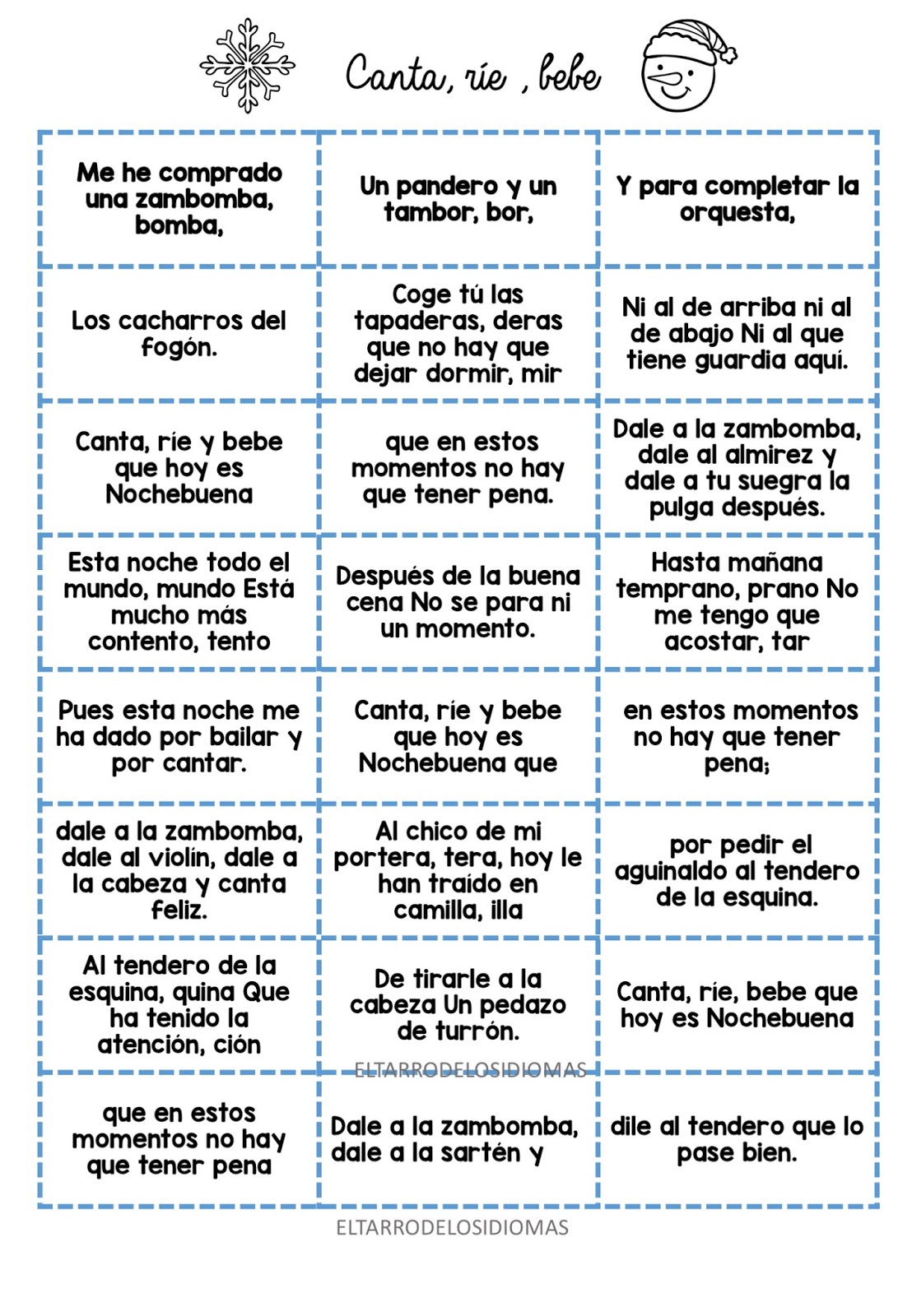 En este caso el villancico se ha dividido por recuadros. Nosotros tendremos que recortar las diferentes piezas y los alumnos tendrán que poner el villancico en el orden correcto escuchando la canción.