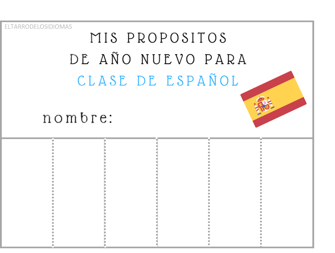 Una vez impreso se harán cortes por las lineas de puntos, los alumnos se llevarán sus propósitos a casa y quitarán uno cada vez que lo cumplan 🙂 . Es una actividad bonita y rápida que podéis hacer con todas las edades y niveles.