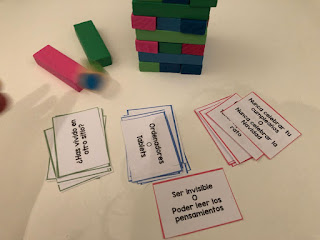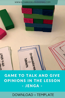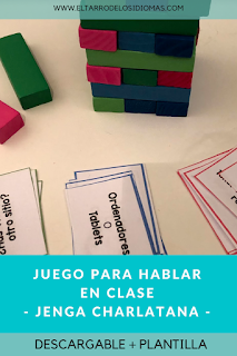 Otra de las ideas que llevaba mucho tiempo queriendo hacer es la famosa Jenga. He visto mil cuentas de profes (mayormente americanos) que utilizan este recurso para cualquier asignatura. Considero que es perfecto para trabajar en clase de idiomas y para hacer actividades para conocerse un primer día de clase.